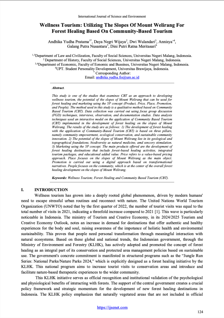 Wellness Tourism: Utilizing The Slopes Of Mount Welirang For Forest Healing Based On Community-Based Tourism
